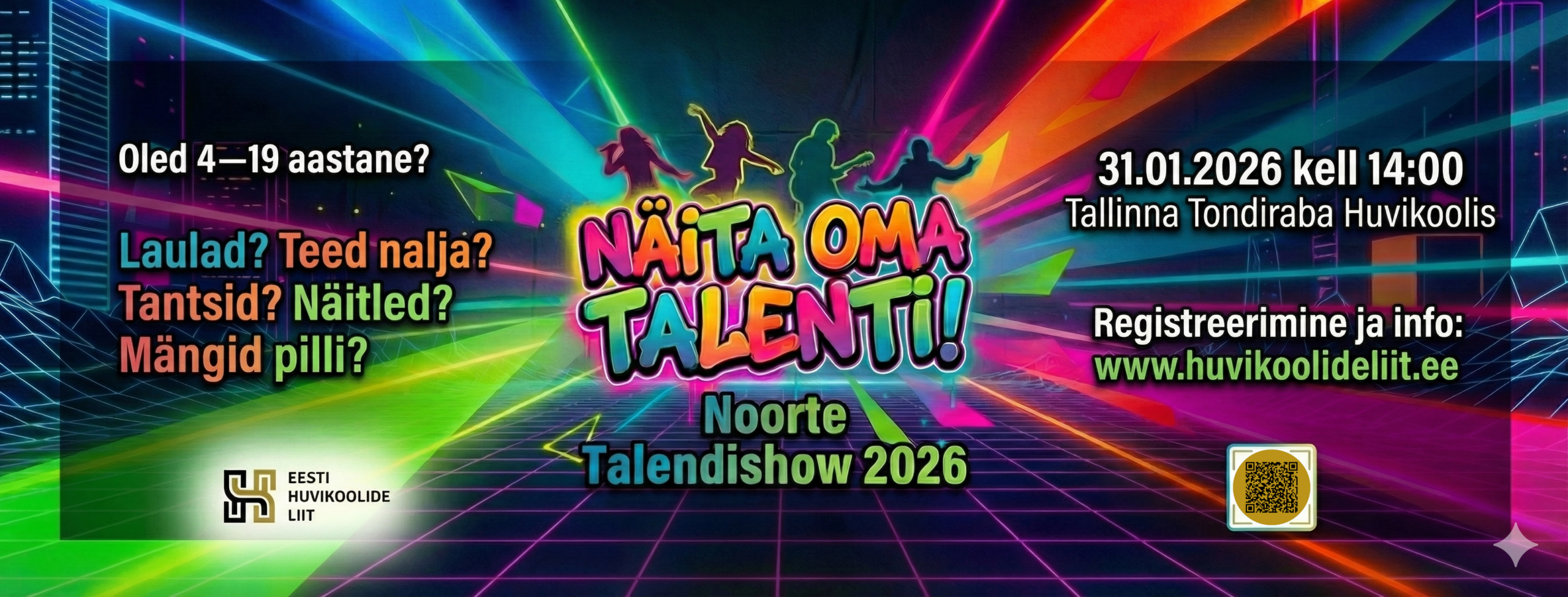 Eesti Huvikoolide Liit ja Tondiraba Huvikool kutsuvad huvikoolide õpilasi osa võtma 2026. aasta talvisest Noorte Talendishowst "Näita oma talenti!".